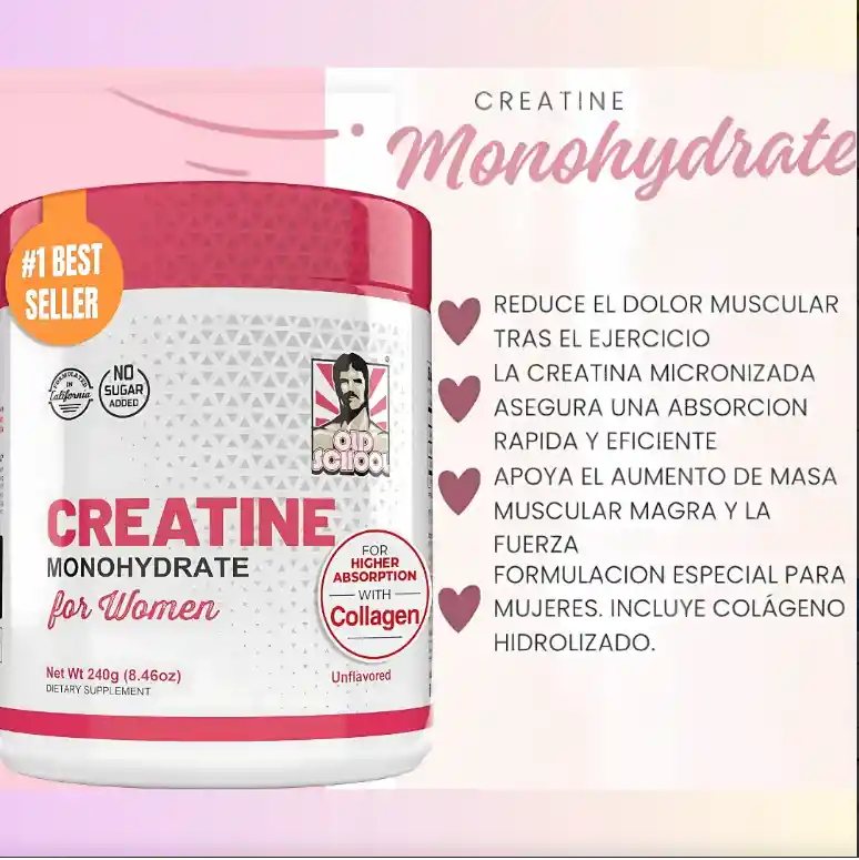 - El producto se importa una vez el cliente realiza la compra --- Si su producto requiere confirmación de talla, color u otras características es necesario confirmar la disponibilidad y el precio antes de realizar la compra. Información adicional del producto Marca: Old School Labs Recuento de unidades: 8.46 Ounce Forma del producto: Polvo Dimensiones: 11x3x12 Ingredientes Especiales: Colágeno Tipo de dieta: Paleo, Cetogénico, Vegano, De origen vegetal, Sin Gluten Beneficios del producto: Apoya el crecimiento y la recuperación del músculo magro Rango de edad (descripción): Adulto Unidades: 1 Porciones por Envase: 30 Estilo: Polvo para mujer ASIN: B0CRL99K4F País de origen: EE.UU. SKU: B0CRL99K4F Peso: 4 lb Formato del suplemento: Polvo Descripción del producto AMPLIFICA SU SALIDA DE TRABAJO: Maximiza rápidamente tu fuerza y ganancias musculares con el increíble poder de la creatina! Nuestro suplemento de creatina de limonada combina el monohidrato de creatina más puro, fortificado con BCAA y colágeno, para mejorar el tono muscular, especialmente en los glúteos y los glúteos, lo que te permite lograr tus objetivos de fitness como nunca antes. ESPECIALIZADO PARA MUJERES: Aproveche esta adición conveniente y agradable a su rutina de entrenamiento para mejorar el rendimiento atlético, la fuerza y la masa muscular magra. Hecha específicamente para mujeres, nuestra bebida cuenta con una textura suave mientras que ofrece la forma más refrescante de incorporar creatina en tu régimen CREATINA DE LA MÁS ALTA Pureza: Di adiós a la hinchazón y abraza el trasero de tus sueños con nuestro monohidrato de creatina. Nuestro producto tiene la mayor concentración de creatina para ofrecer resultados óptimos. Respaldada por una amplia investigación, la creatina se erige como el suplemento más estudiado y ayuda con series, repeticiones y capacidad de trabajo para ayudarlo a aprovechar al máximo su rendimiento de entrenamiento. ACELERAR LA RECUPERACIÓN: Sinergiza tus para un máximo impacto con nuestra creatina, que armoniza perfectamente con las potentes fórmulas de pre-entrenamiento para elevar tus ganancias a nuevas alturas. Abraza la intensidad de tus entrenamientos sin el temor inminente del dolor después del entrenamiento, asegurando un viaje revitalizado y sin dolor hacia tus objetivos de fitness. OLD SCHOOL LABS Orgullo: Todos nuestros productos están formulados en el sur de California y fabricados en los Estados Unidos con los más altos estándares GMP, certificados por laboratorios externos para garantizar su calidad, pureza y seguridad. Estamos orgullosos de apoyar su viaje de fitness y ayudarlo a mantenerlo en la vieja escuela