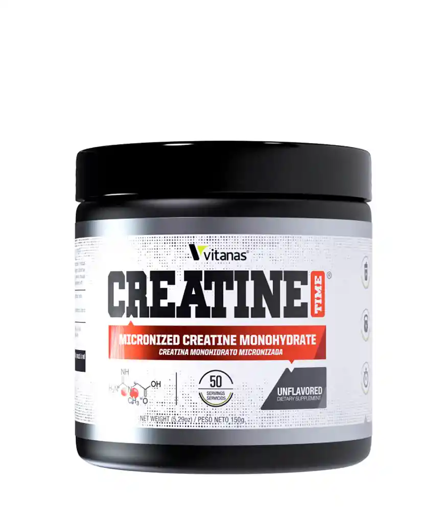 Creatine Vitanas 300 gr • La creatina desempeña un papel crucial en la producción de energía durante actividades de alta intensidad y corta duración, como levantamiento de pesas y ejercicios explosivos.• Mejora la capacidad de rendimiento • Aumenta la fuerza y la potencia muscular • Favorece la recuperación muscular • Estimula el crecimiento muscular • Adultos, Tomar 1 (una) cucharada medidora de disuelta en agua o su bebida favorita.• 3 gr (100 Servicios aprox) • Creatina monohidratada • Cada servicio contiene: 3 gr de creatina monohidratada. • 100% pura • 0 azúcar • Sin sabor.