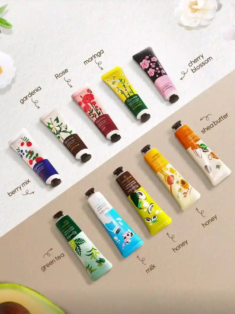 ESTE PRODUCTO SE ENVÍA SEGÚN DISPONIBILIDAD DE DISEÑO Y COLOR. 1 Und. - Crema de Manos Hidratante Tamaño Viajero (30g) Enriquecidas con una mezcla de ingredientes nutritivos de rápida absorción, estas cremas combaten la sequedad y dejan la piel suave, protegida y delicadamente perfumada, sin dejar sensación grasa. Características Principales: Hidratación Inmediata: Alivia y repara las manos secas al instante. Tamaño Ideal para Viajar: Cumple con las normativas de líquidos para aeropuertos (30g). Rápida Absorción: Fórmula ligera y no pegajosa. Diferentes Aromas disponibles.