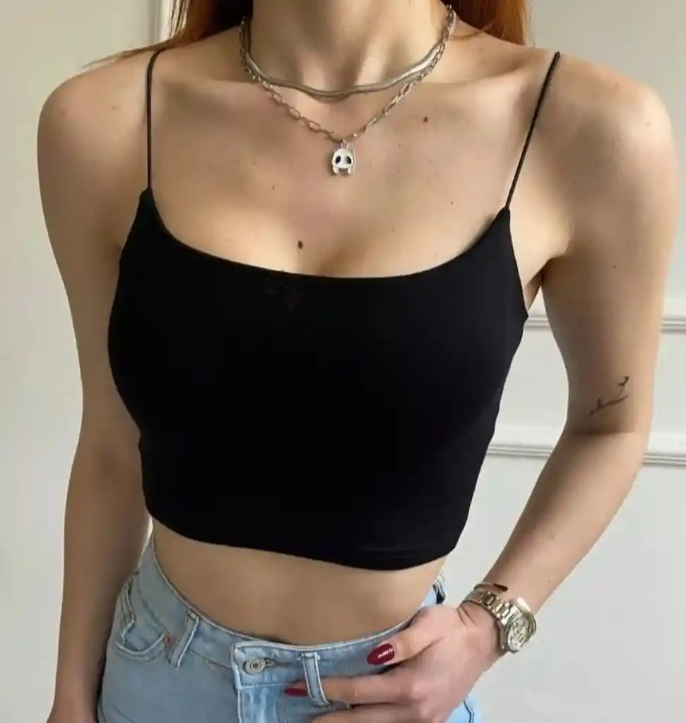 Talla única XS - S - M✨ Top ajustado, cómodo y con estilo. Diseño con tirantes delgados y escote recto que realza tu figura. Tela suave, elástica y fresca, ideal para salidas, fiestas o looks casuales. ¡Versátil y perfecto para combinar!.