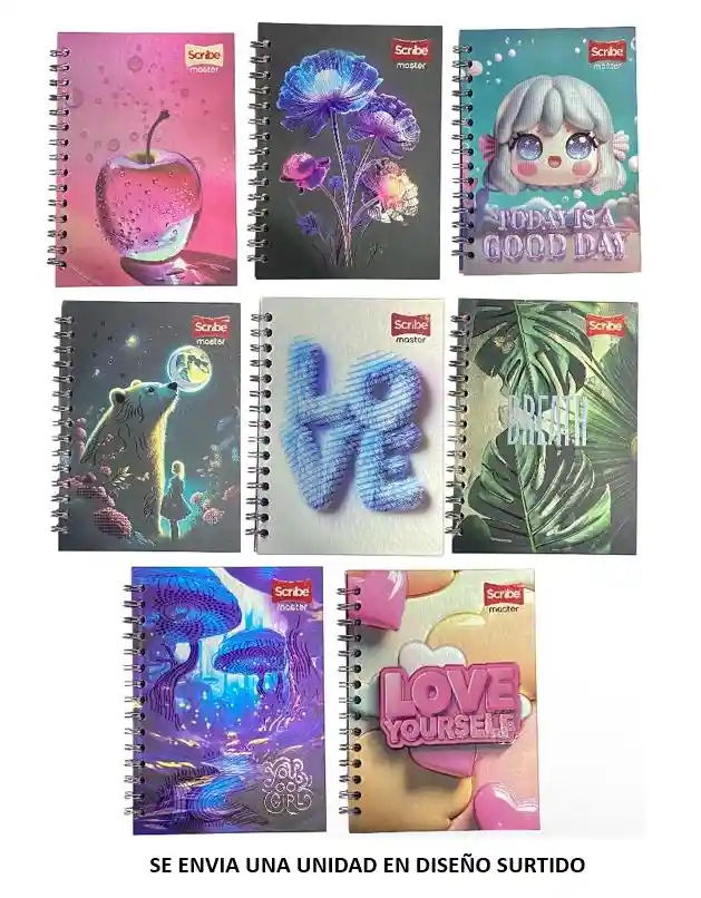 Cuaderno Argollado 80 Hojas Cuadriculado Scribe Diseños Surtidos Pasta Dura. SE ENVÍA DISEÑO SEGÚN DISPONIBILIDAD. MEDIDAS ALTO 21 CM X 15 CM ANCHO