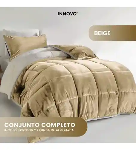 Abrígate con estilo, suavidad y confort. BEIGE Este edredón reversible de Innovo+ combina el lujo de la microfibra cepillada con la calidez del forro tipo ovejero. Ideal para cama sencilla, ofrece una experiencia de descanso suave, acogedora e hipoalergénica. Incluye fundas de almohada a juego y está disponible en elegantes colores que combinan con cualquier decoración. Perfecto para quienes buscan una opción cálida, moderna y fácil de cuidar. Beneficios destacados: Diseñado para cama sencilla: Medidas ideales para cubrir cómodamente colchones de 100 x 190 cm. Reversible con forro ovejero: Un lado en microfibra suave y otro tipo borrego para más calor. Hipoalergénico y transpirable: Ideal para personas sensibles o con alergias. Fácil de lavar: No encoge ni se deforma. Apto para lavadora. Suave y ligero: Brinda una sensación cálida sin exceso de peso. Estilo elegante y minimalista: Disponible en colores sobrios y modernos que no pasan de moda. Ficha Técnica: Marca: Innovo+ Tipo: Edredón reversible cama sencilla Medidas del edredón: 160 cm x 230 cm Material exterior: Microfibra cepillada ultra suave Material interior (reverso): Forro ovejero tipo sherpa Incluye: 1 Edredón 1 Funda de almohada (70 x 55 cm) Colores disponibles: Negro, gris, azul, mostaza Lavado: Lavable en lavadora, no usar blanqueador