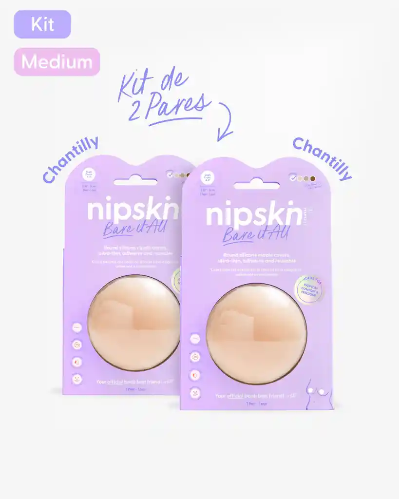 Cubre pezones Adhesivos Invisibles para Mujer, adhesivo e hipoalergénicos, hechos 100% de silicona de grado médico. NO contienen látex. Tienen un acabado matte, lo cual permite que el producto no refleje luz debajo de la ropa. Vienen en dos tamaños: Medium: Vienen en un tamaño de 8 cm para brindarte mayor cobertura e invisibilidad. Ideales para copas A-B. Color: Chantilly - Pieles muy claras subtono frío, más rosadas. Color: Chantilly - Pieles muy claras subtono frío, más rosadas.