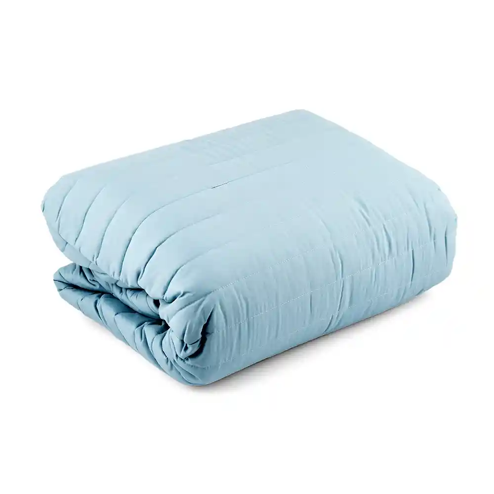 Cubrecama sencillo con 90 gramos de microfibra 100%. Color azul vibrante que añade frescura y vitalidad. Suave, ligero y duradero, ideal para renovar el dormitorio