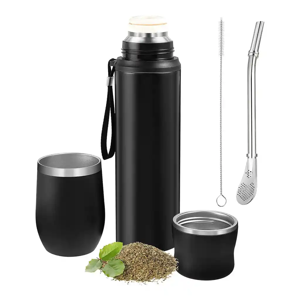 El Dandat Kit de Yerba Mate 4 Piezas es la elección perfecta para disfrutar del ritual del mate con estilo, comodidad y salud. Incluye una calabaza de 355 ml, bombilla, cepillo limpiador y botella térmica de 1 litro (34 oz) fabricados en materiales resistentes y duraderos. Su diseño moderno en color negro con aislamiento térmico mantiene la temperatura ideal del agua o la infusión, conservando los beneficios antioxidantes y energizantes de la yerba mate. Ideal para uso diario, viajes o trabajo, promoviendo bienestar y energía natural en cada sorbo.