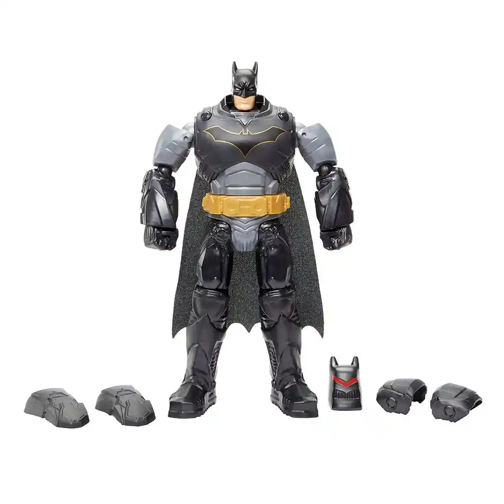 Figura de Batman de 12 pulgadas y escala sobredimensionada para una gran batalla. Detallado; exagerado traje de etiqueta blindada Thrasher con capa de tela de longitud completa. La capucha extraíble extiende el juego del personaje. 11 puntos de articulación permiten un combate realista y posado.