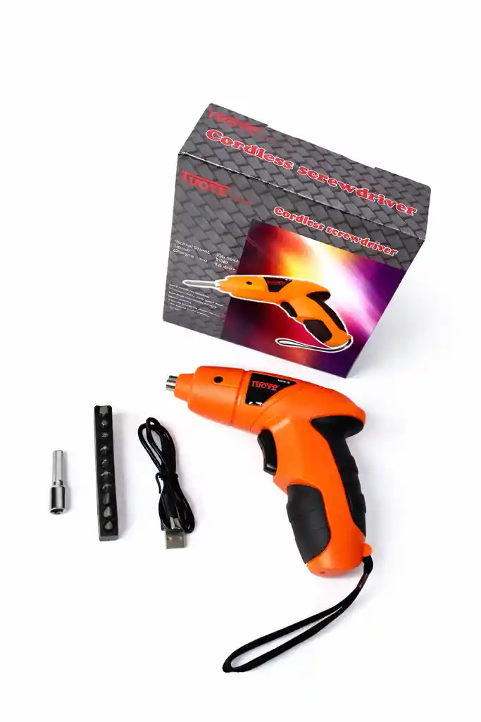 Haz tus trabajos de reparación más rápidos, precisos y sin esfuerzo con este Destornillador Eléctrico Inalámbrico TUOYE, la herramienta ideal para tu hogar, taller o emprendimiento. Su diseño ergonómico y compacto te permite trabajar con total comodidad, incluso en espacios reducidos. Equipado con batería recargable USB, este destornillador te ofrece la potencia necesaria para atornillar y desatornillar múltiples superficies sin limitarte por cables. Incluye un set de puntas magnéticas de alta resistencia, perfecto para cualquier tipo de tornillo, además de una extensión y adaptador para trabajos más específicos. Es una herramienta ligera, práctica y muy fácil de usar, ideal para armar muebles, reparar electrodomésticos, instalar accesorios, trabajar en bricolaje y mucho más. Su diseño reforzado y su agarre antideslizante garantizan precisión en cada giro, incluso durante sesiones prolongadas. ✨ Características destacadas 🔋 Batería recargable por USB — lista para usar donde la necesites. 🔧 Incluye set completo de puntas magnéticas para múltiples tareas. 🎯 Torque eficiente para atornillar con rapidez y sin esfuerzo. 🤲 Diseño ergonómico con grip antideslizante. 🔄 Atornilla y desatornilla con gran estabilidad. 🧰 Compacto y portátil, ideal para llevar en tu caja de herramientas. 🏡 Perfecto para: hogar, oficina, taller, instalaciones y bricolaje. 📦 Contenido del paquete Destornillador eléctrico inalámbrico Set de puntas múltiples Adaptador extra Cable de carga USB Caja original Este destornillador eléctrico es la herramienta que todo usuario necesita para trabajar más rápido, más cómodo y con resultados profesionales. ¡Indispensable para cualquier caja de herramientas