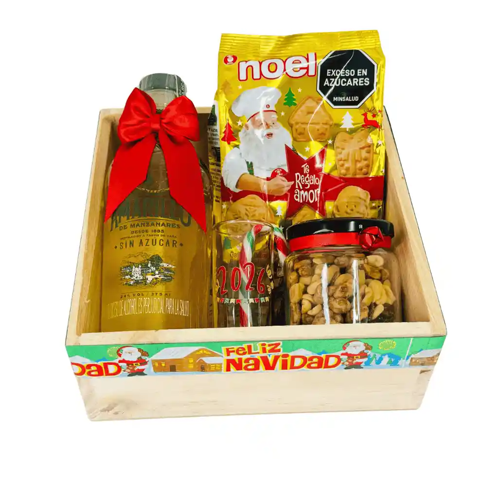 “Alma de Noche” es un detalle navideño perfecto para sorprender con un regalo moderno y lleno de estilo; incluye una botella de Aguardiente Amarillo de 375 ml 🥃, galletas navideñas 🍪, una copa 2026 brillante 🥂, un bastón de dulce 🍭, un tarrito con snacks y una base de madera que realza la presentación con un toque cálido y sofisticado. Es una opción ideal para colaboradores, clientes, parejas o amigos que disfrutan los detalles festivos con personalidad. Te podemos obsequiar una tarjeta si nos envías el mensaje para que acompañes tu detalle.