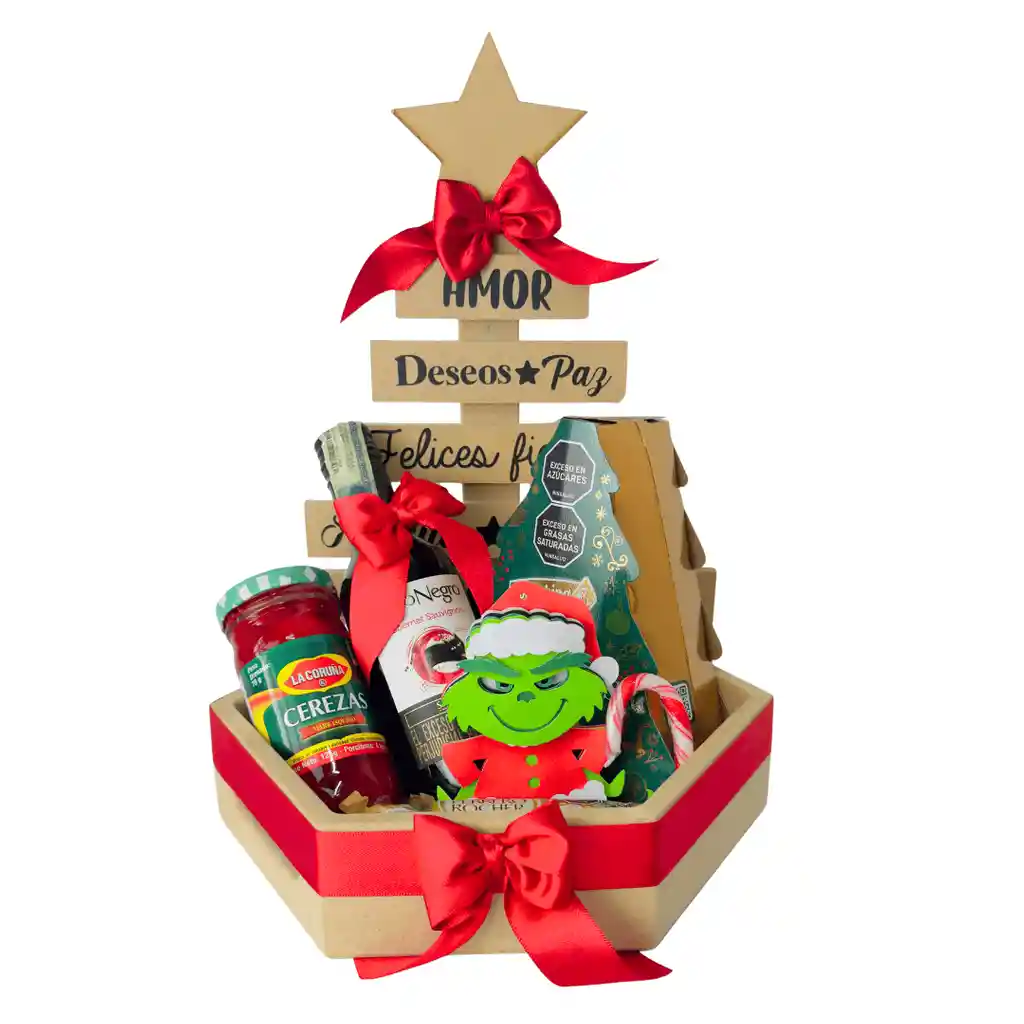 Nuestra “Ancheta Grinch” es un detalle navideño temático perfecto para sorprender con un regalo divertido, dulce y muy festivo; incluye un vino piccolo de 125 ml 🍷, galletas navideñas en forma de árbol 🍪🎄, cerezas, un Ferrero por 3 unidades 🍫✨, un pin navideño 3D, un bastón dulce 🍭, un árbol de Navidad en madera con deseos y una base de madera que realza la presentación con un toque cálido y decorativo. Es una opción ideal para quienes buscan un regalo navideño diferente, alegre y lleno de encanto para compartir con clientes, amigos o familiares. Te podemos obsequiar una tarjeta si nos envías el mensaje para que acompañes tu detalle.
