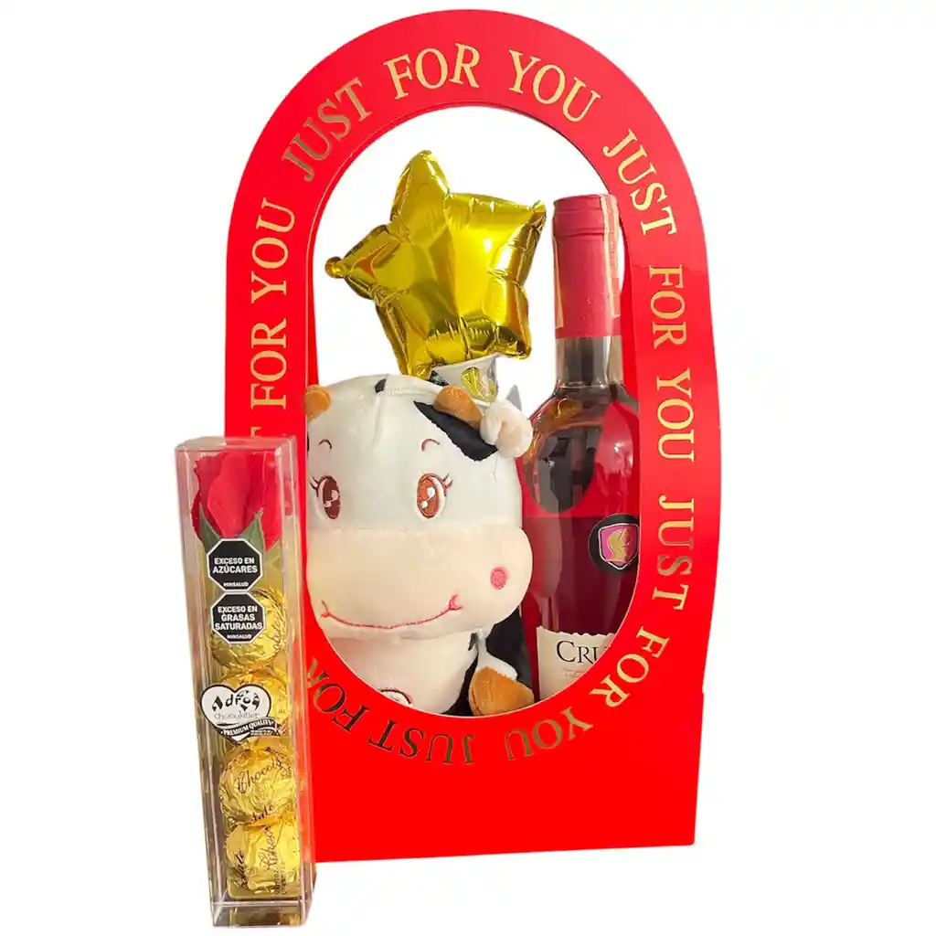 Día de la Mujer Regalo especial Ancheta con chocolates, Vino y peluche - combo 20