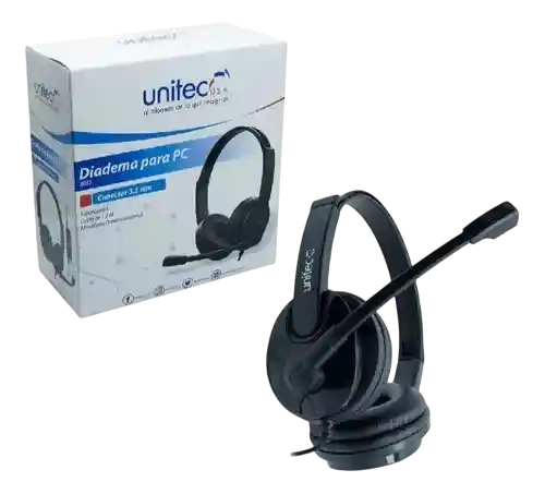 Diadema Unitec ideal para call center, computadores, videollamadas, celulares Conector 3.5 Dimensión Del Conductor: 40mm Cable de 1.2 Metros Microfono Omnidireccional Mute Integrado
