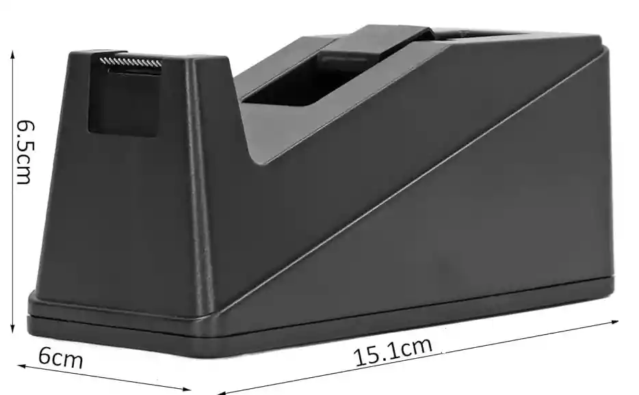 Dispensador De Cintas Adhesiva mediano Ref. DL181. Ideal para usar con cintas de ( 12mm ). Es facil de manejar, lo puede usar en la oficina, en el hogar y en tus labores escolares. Medida del dispensador LARGO 15 cm, Alto 6.5.cm, Ancho 6 cm. Lo hay en color negro y Azul. Se envia color segun disponibilidad. Se despacha sin la cinta