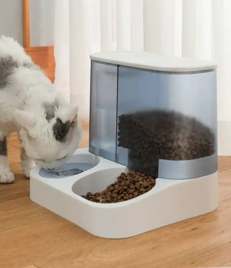 Dispensador de comida y agua traslúcido Azul Agua*1 Litro, Comida 2.8 Litros