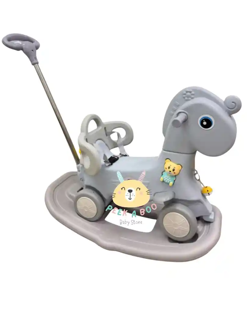 Caballito Montable 3 en 1 para Niños Diversión, seguridad y ternura en un solo juguete. Nuestros caballitos montables 3 en 1 son ideales para acompañar los primeros paseos de tu peque. Su diseño versátil permite usarlos como mecedora, montable o correpasillos, todo en uno. Características principales: Cinturón de seguridad en el respaldo para mayor protección. Manija de control para facilitar la conducción por parte de los padres. Rueditas resistentes y seguras. Diseño encantador con carita dulce. Incluye accesorios como osito y cascabel para más diversión. Beneficios de uso: Acompaña el desarrollo motor y la coordinación del niño. Ofrece seguridad en cada etapa de uso. Estimula la imaginación y el juego activo. Edad recomendada: a partir de 1 año. Colores disponibles: surtidos según modelo.