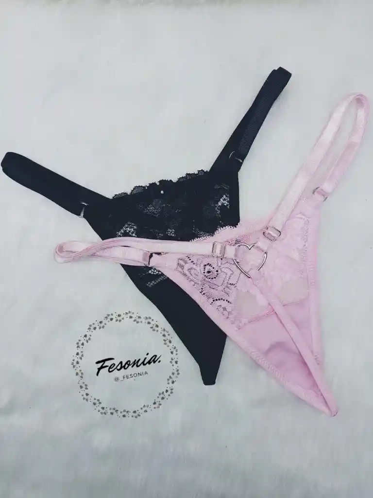 SET DE 2 HILOS COLOR NEGRO Y ROSA EN ENCAJE CON DETALLE METALICO EN FORMA DE CORAZON, TALLA UNICA AJUSTABLE