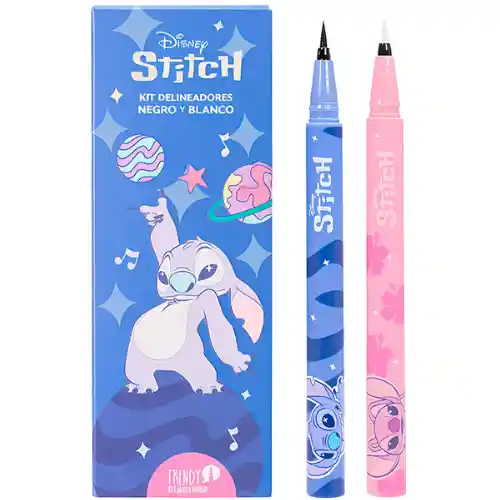 KIT X2 DELINEADORES STITCH que incluye los colores blanco y negro. Estos delineadores son populares por su larga duración y resistencia al agua. Características y Reseñas: -Larga Duración y Resistencia al Agua: El kit es conocido por ser resistente al agua y de larga duración, manteniendo tu delineado intacto por más tiempo. -Acabado Mate: Ambos delineadores en el kit ofrecen un acabado mate. -Facilidad de Uso: La usuaria de Instagram @trendyshopbta menciona que con este kit, la práctica del delineado es más fácil que nunca, lo que sugiere que son adecuados tanto para principiantes como para usuarios más experimentados. -Pigmentación: Las reseñas indican que los delineadores de Trendy en general tienen una buena pigmentación. -Diseño Disney Stitch: El kit presenta un diseño adorable con temática de Stitch de Disney