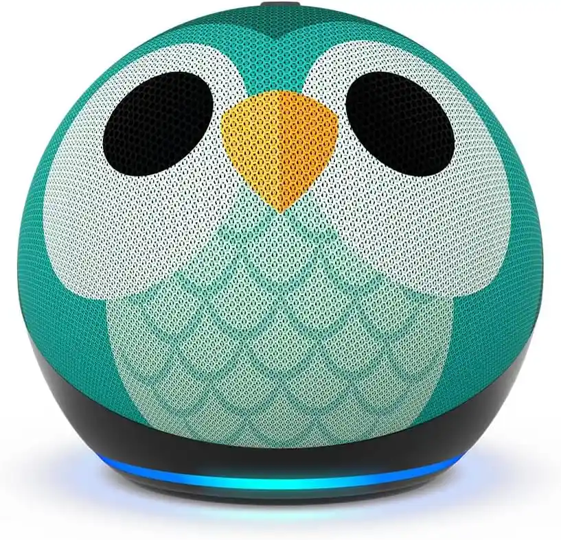 Echo Dot Kids 5ta Generación Edición Búho – Nuestro parlante con Alexa más popular y adorable diseñado para niños (no es un juguete). El parlante mejorado proporciona voces más nítidas, así como un sonido detallado y vibrante. Donde el aprendizaje se une a la diversión – Los niños pueden pedirle a Alexa que ponga música, que lea un cuento para dormir, que los ayude a hacer la tarea y más. Reproduce canciones por streaming en Amazon Music, Apple Music, Spotify, entre otros. Controles parentales fáciles de usar – Alexa dará respuestas aptas para niños automáticamente y filtrará las canciones explícitas. También puedes establecer límites de tiempo diarios y revisar la actividad en el Parent Dashboard de Amazon. Mayor independencia – Los pequeños del hogar toman el control de sus rutinas con Alexa, ya que pueden establecer sus propias alarmas, apagar luces inteligentes compatibles, así como llamar a familiares y amigos aprobados. Convierte la voz de Alexa en la de un búho – Los niños pueden personalizar la manera como Alexa suena con una voz simulada de búho o dragón, así como escuchar canciones, chistes y datos curiosos inspirados en personajes específicos. Diseño que protege tu privacidad – Amazon no se dedica a vender la información personal de tu familia a terceros. Cuenta con varias capas de controles de privacidad, incluyendo un botón para desactivar los micrófonos.