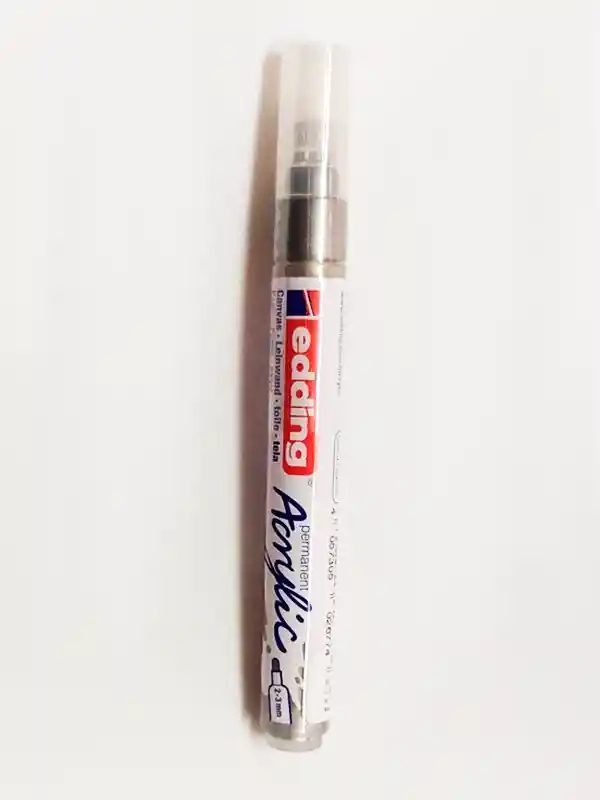 Marcador acrílico para pintar en superficies tanto claras como oscuras, ideal para materiales como lienzos o papel para pintar. El grosor de trazo de la punta redonda es de 2-3 mm.