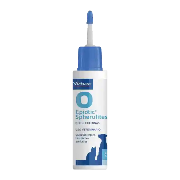 Epiotic Spherulites 100 ML es un limpiador auricular diseñado para perros y gatos. Su fórmula ayuda a mantener la higiene del canal auditivo, eliminando el exceso de cerumen, suciedad y mal olor. Características y Beneficios - Contiene ácido láctico y ácido salicílico, que tienen propiedades antisépticas y antifúngicas. - Ayuda a prevenir infecciones y recaídas en animales predispuestos a otitis. - Tiene efecto cerumenolítico, lo que facilita la eliminación de residuos en el oído. - Su uso regular mantiene el equilibrio microbiano natural. - Actúa como calmante, reduciendo el picor y la irritación. Modo de Uso - Aplicar 3-5 mL dentro del canal auditivo, según el tamaño del oído. - Masajear suavemente la base de la oreja para distribuir el producto. - Limpiar el exceso con una torunda humedecida sin frotar. - Se puede usar 1-2 veces por semana como preventivo o 1-2 veces al día en casos severos. Precauciones - No usar en caso de rotura de tímpano. - Evitar el contacto con los ojos. - Mantener fuera del alcance de los niños.