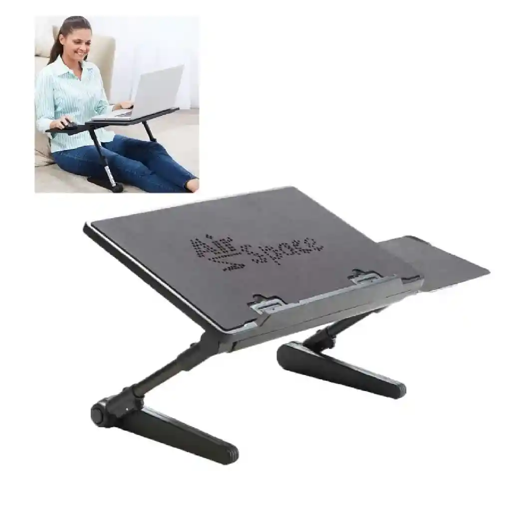 ¡Trabaja donde quieras! Escritorio plegable y ajustable con ventilador USB integrado y repisa lateral. Ligero, ergonómico y compatible con cualquier dispositivo. ¡Productividad con total comodidad con un solo clic!