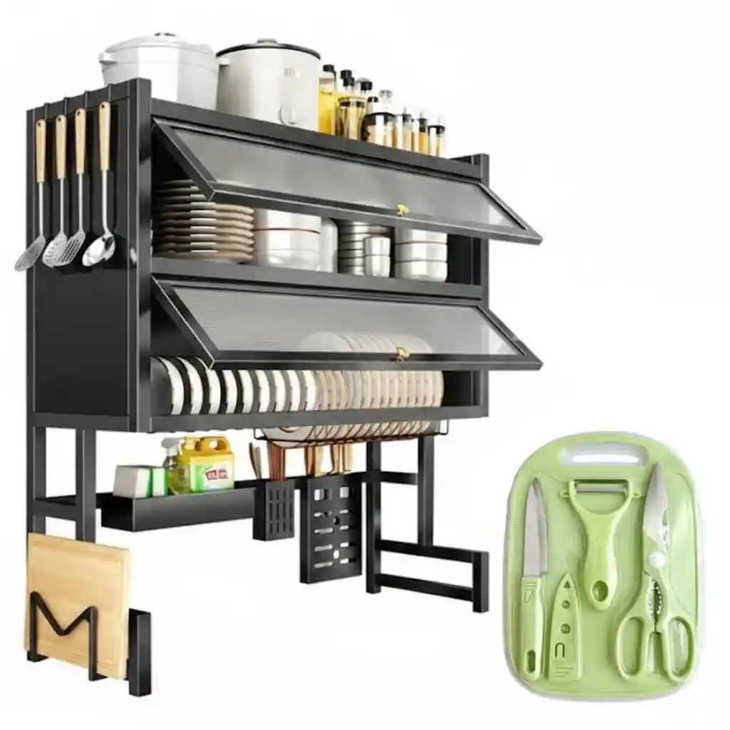 Escurridor 2 en 1 de 88 cm Sokany – Orden, Eficiencia y Versatilidad en tu Cocina El Escurridor de Cocina 2 en 1 de 88 cm ofrece una manera práctica de mantener tu cocina limpia y organizada. Su doble nivel permite separar platos, tazas y utensilios, evitando acumulación de agua y promoviendo un secado rápido y uniforme. Su estructura metálica y piezas plásticas reforzadas garantizan resistencia al uso continuo y estabilidad en todo momento. Este modelo se entrega con un obsequio Sokany que incluye un cortador picador de alimentos, un pela papas ergonómico, tijeras de cocina y un cuchillo afilado, herramientas indispensables para el día a día culinario. Especificaciones detalladas: Marca: Sokany. Modelo: Escurridor 2 en 1 con accesorios. Tamaño: 88 cm (ancho total). Capacidad aproximada: Más de 30 piezas entre platos, vasos y cubiertos. Materiales: Estructura de acero cromado y bandejas plásticas de drenaje. Diseño: Doble nivel con base antideslizante. Obsequios incluidos: Cortador picador, pela papas, tijeras y cuchillo. Uso ideal: Hogar, apartamentos o cocinas con espacio limitado. Nota de garantía: Cuenta con 30 días de garantía por defectos de fabricación. No aplica por daños ocasionados por golpes, exposición directa al fuego o líquidos corrosivos.