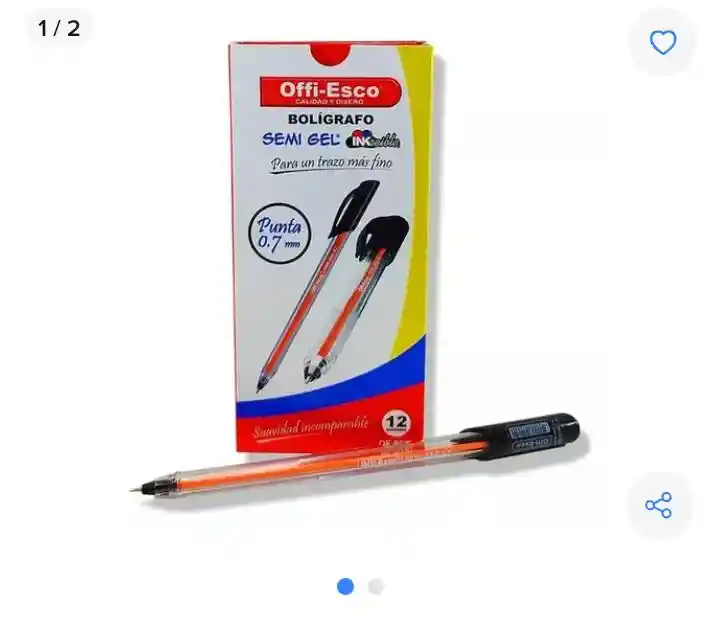 Esfero offi esco punta semi-gel venta caja x 12, tapa negro, color negro DISPONIBLE 6 UND