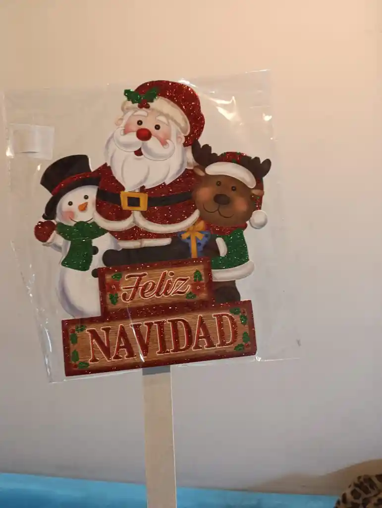 ESTACA DE JARDÍN FELIZ NAVIDAD CON SANTA, RENO Y MUÑECO DE NIEVE