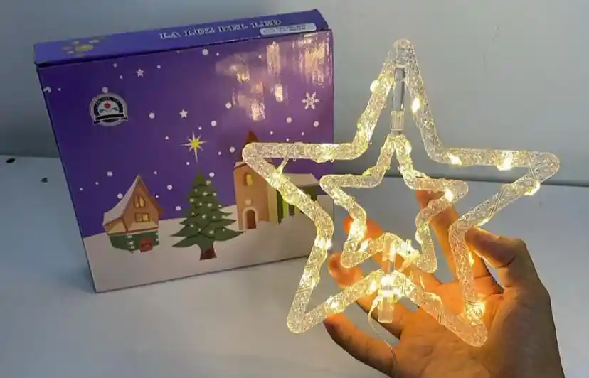 Estrella para la punta del árbol. Estructura transparente, luces de color multicolor. Longitud 15cm.