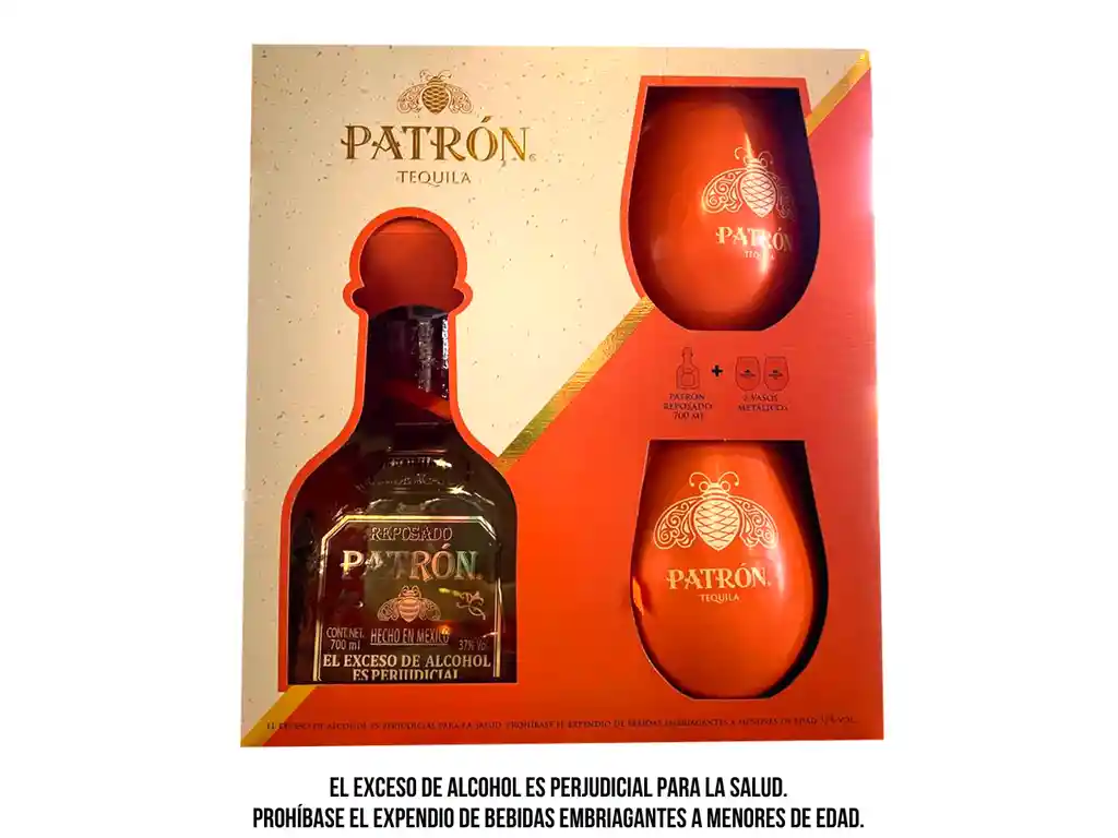 Descubre la elegancia y el carácter del Tequila Patrón Reposado con este exclusivo estuche premium, ideal para regalar o disfrutar en ocasiones especiales. El set incluye una botella de Patrón Reposado y dos vasos metálicos de diseño moderno, perfectos para degustar el tequila frío o preparar cocteles con estilo. El tequila destaca por su sabor suave, notas de roble y un equilibrio excepcional que lo convierten en una de las etiquetas más apreciadas. Los vasos metálicos complementan el estuche con un toque contemporáneo y resistente, ideales para llevar a reuniones, disfrutar al aire libre o simplemente elevar la experiencia de cada trago. Botella de Tequila Patrón Reposado, reconocida por su sabor equilibrado y suave maduración. Dos vasos metálicos incluidos, duraderos y de diseño elegante. Presentación premium, ideal para regalo o colección. Perfecto para disfrutar en celebraciones, reuniones o momentos especiales. Este estuche combina tradición, calidad y estilo en una presentación que realza cada sorbo de tequila.
