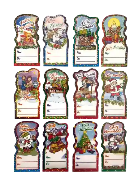 Dale un toque especial a tus regalos con estas encantadoras etiquetas adhesivas navideñas. Con un diseño festivo y colorido, cada sticker cuenta con espacio para escribir "De" y "Para", lo que las hace perfectas para personalizar y decorar tus regalos de Navidad.