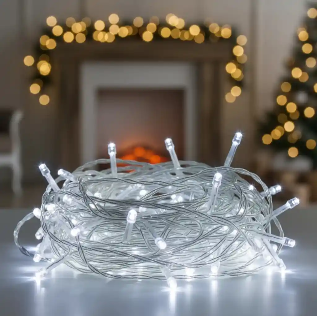 LED. Cable transparente, luz blanca. Longitud de 7 metros.