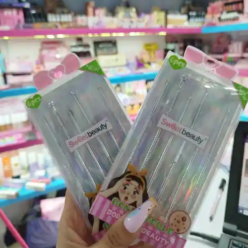 El Set de Agujas Removedoras de Acné Sweet Beauty es un kit de herramientas de acero inoxidable diseñado para la limpieza facial y la eliminación segura de puntos negros y espinillas. Características y Uso: -Material: Las herramientas están fabricadas en acero inoxidable para asegurar durabilidad y resistencia a la corrosión. -Contenido: El set incluye 6 herramientas diferentes (agujas y extractores de lazo) diseñadas para distintos tipos de imperfecciones. -Uso Seguro: Según Rappi, el diseño permite realizar una limpieza facial profesional desde casa sin maltratar la piel si se usa correctamente. -Recomendación de Uso: Se aconseja usar un vaporizador facial o una toalla caliente durante 3-5 minutos antes de la extracción para abrir los poros y facilitar el proceso.