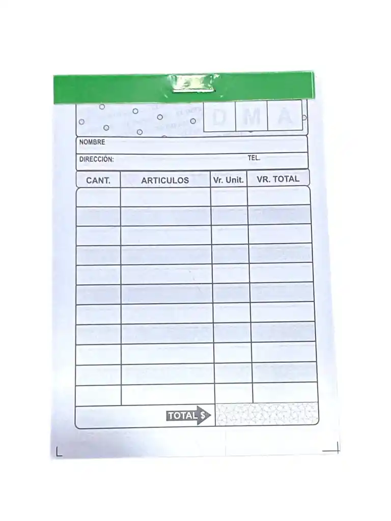 Facturero Autocopiante Medidas 12x8 Cm APROXIMADAMENTE