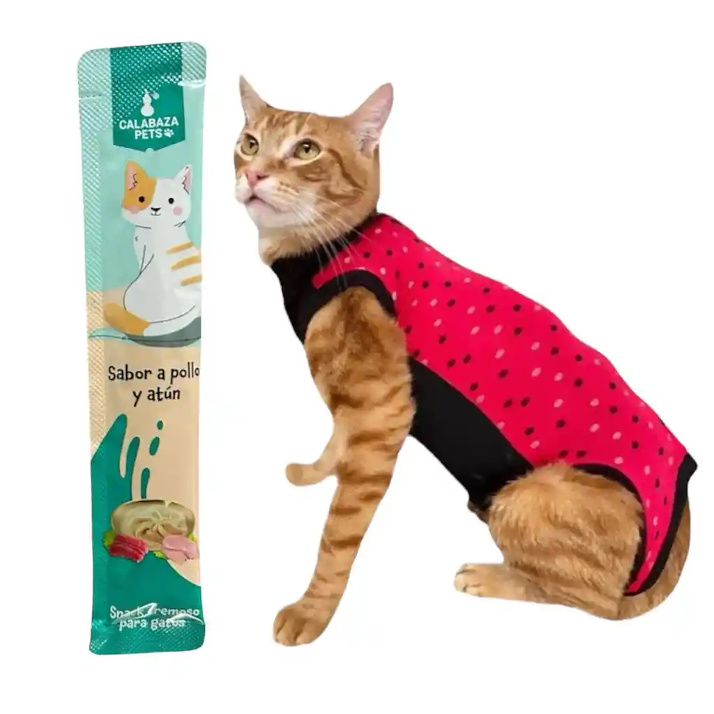 Faja para gatos post quirúrgicas + snack (obsequio) Ideales para procedimientos como castraciones, esterilizaciones, problemas dermatológicos. XS: Peso 1 a 2 kg aprox Circunferencia abdomen cm: 25 - 31 Largo lomo cm: 25 - 31 Color según disponibilidad