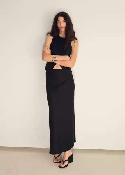 Cierre de Botones Laterales Diseño Largo Diseño Recto Tejido Mezcla de Algodón y Lino Tiro Medio Total Look - 17071141_99.