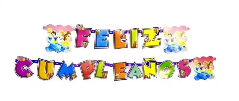 Letrero - Guirnalda Feliz Cumpleaños Niña PRINCESAS DISNEY