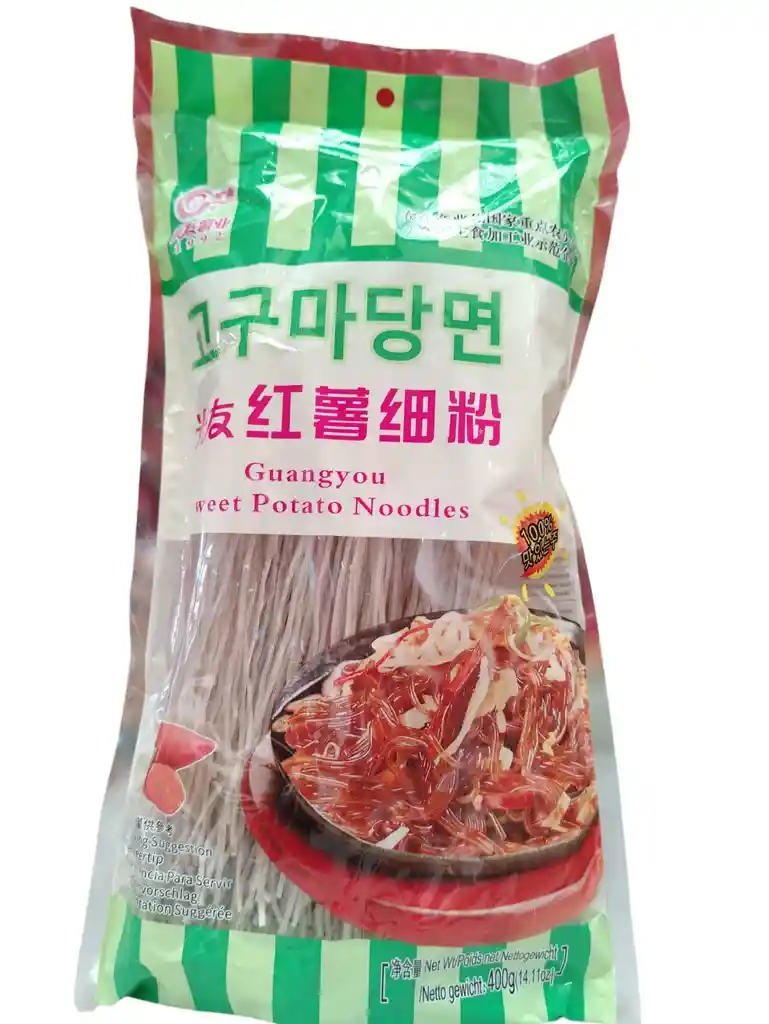 El fideo de batata, también conocido como fideo de boniato o fideo de vidrio, es un tipo de fideo hecho principalmente de almidón de batata y agua. Se caracteriza por su aspecto translúcido una vez cocido y su capacidad para absorber sabores, lo que lo hace versátil en diversas preparaciones culinarias.