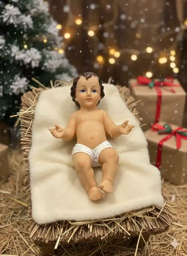 Figura Religiosa Niño Jesús 30cm – Porcelana Italiana Cattolica (Sin Cuna Incluida) Imponente y delicada figura del Niño Jesús de 30 cm, elaborada en fina porcelana italiana Cattolica. Su acabado artesanal, detalles minuciosos y colores suaves realzan la expresión de paz y pureza de la imagen. Ideal para altares, espacios devocionales, decoración del hogar o colecciones religiosas. Este modelo no incluye cuna. Características: Altura: 30 cm Material: Porcelana italiana de alta calidad Acabado artesanal con detalles finos Colores suaves y realistas Ideal para uso devocional o decorativo Marca: Cattolica No incluye cuna