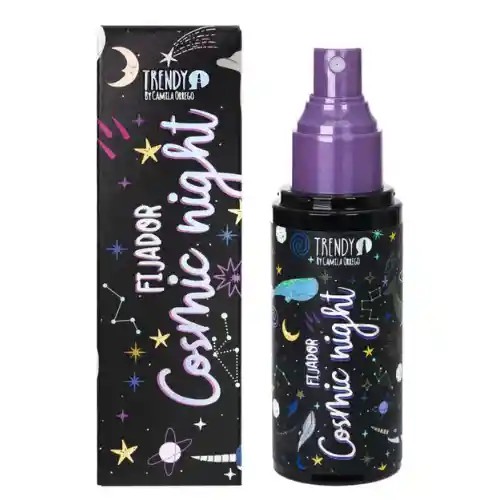 El FIJADOR Trendy Cosmic Night es un spray diseñado para prolongar la duración del maquillaje, proporcionando un acabado mate y fresco que ayuda a prevenir que se cuartee o se transfiera a la ropa o tapabocas. Características principales: -Acabado: Ofrece un acabado mate, ideal para todo tipo de piel. -Beneficios: Refresca la piel, proporciona hidratación y mantiene el maquillaje intacto por más tiempo. -Ingrediente clave: Contiene PVP (polivinilpirrolidona), un ingrediente común en los fijadores de maquillaje que ayuda a su efectividad, según expertos. -Presentación: Viene en formato spray y se ofrece en presentaciones de 100 ml y también en un formato de recarga (doypack) de 240 ml.