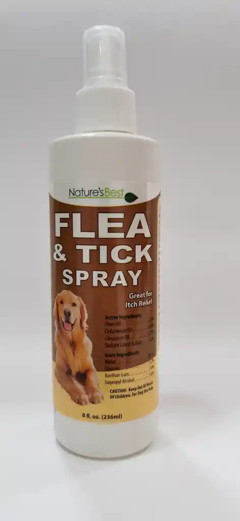 Nature's Best Flea & Tick Spray para perros está especialmente formulado con aceites esenciales para repeler las pulgas y las garrapatas sin someter a su mascota a los productos químicos agresivos que se encuentran en los aerosoles tradicionales para pulgas y garrapatas. Esta mezcla de ingredientes naturales consuela y protege a su perro de las pulgas y las garrapatas en contacto. Esta mezcla única de aceite de clavo. aceite de cedro y aceite de canela repele las pulgas y las garrapatas de manera efectiva durante todo el día. y también hace que su mascota huela fresco