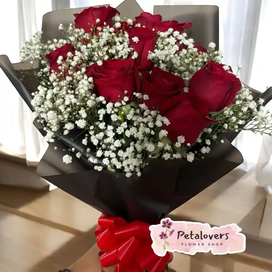 Un detalle clásico y elegante con 9 rosas rojas, símbolo de amor y admiración, acompañadas de delicada gypsoph...Ver más