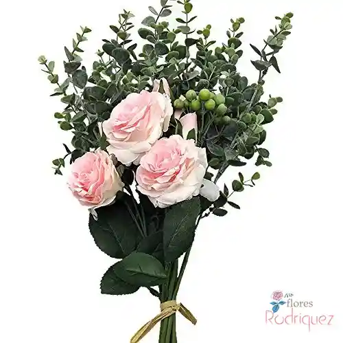 tres rosas color pastel de tipo importacion con follaje aromatico inspirado en el bosque en bouquet Puedes dejar tus mensajes en el chat del RT, nosotros los veremos. IMAGEN DE REFERENCIA