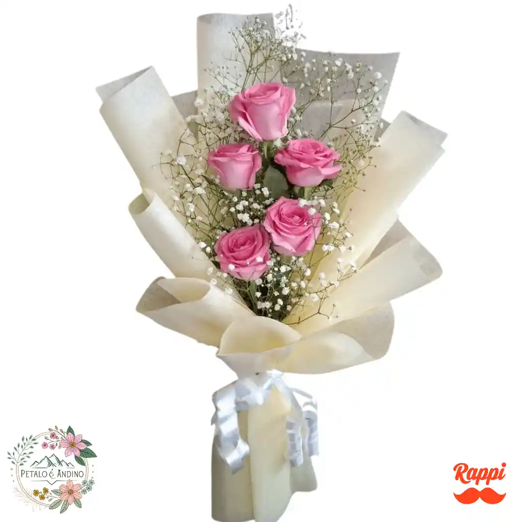 Hermoso arreglo de flores con rosas rosadas, acompañadas de delicada gipsófila, que aporta un estilo suave, romántico y elegante. Envuelto en papel beige y terminado con un moño blanco, es el detalle perfecto para sorprender con sencillez y buen gusto. Ideal para cumpleaños, agradecimientos o para demostrar cariño con un arreglo delicado y encantador.