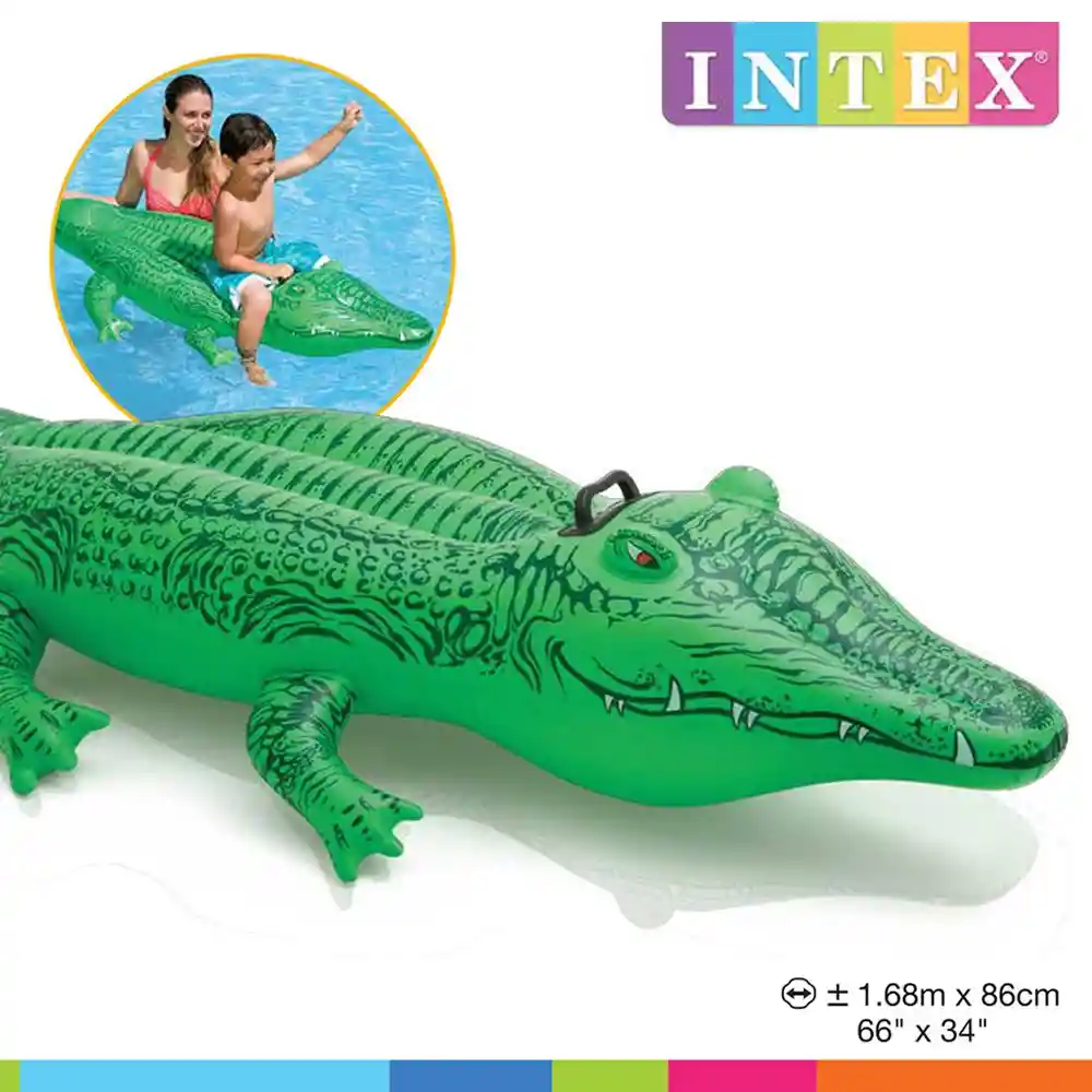 - Flotador Inflable Diseño de cocodrilo. Lleva un poco de colorido, realista y amigable diversión de caimanes a tu próxima piscina o lago con este delicioso inflable de Intex. - El cocodrilo verde brillante está hecho de vinilo resistente a los rayos UV y tiene espacio para varios niños de todas las edades. - Características espacio para múltiples pasajeros Construida de vinilo durable de calibre 10. Dos cámaras de aire. - Mide 170×86 cm.