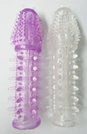 Esta funda en silicona es súper suave y elástica, con textura en sus puntas para una estimulación extra. Pequeña funda para el pene, tiene nodos estimulantes para hacer más placentera la penetración.