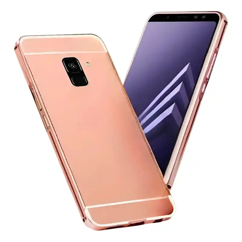 Funda Samsung A8 Plus 2018 Estuche Bumper características : -Estuche protector aluminio tipo espejo. -Botones y compartimientos que se acomodan perfectamente con los del teléfono Diseño elegante Función antigolpes Resistencia al polvo Nota: por favor no olvide despegar la película protectora de la tapa trasera.