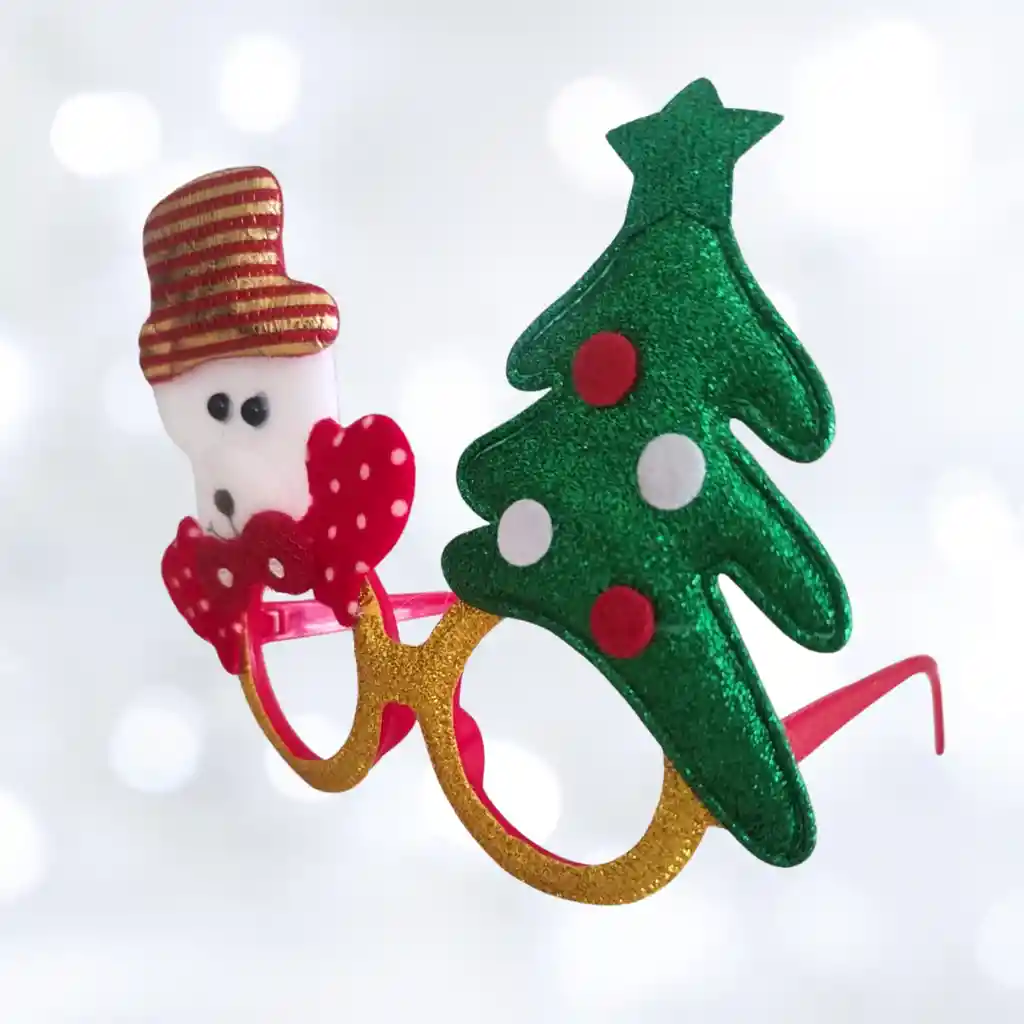 Gafas en pasta con detalle de árbol y oso navideño, funciona para niños y adultos ya que se adapta fácilmente. Accesorio para navidad, accesorios navideños, novenas, celebracion navidad.