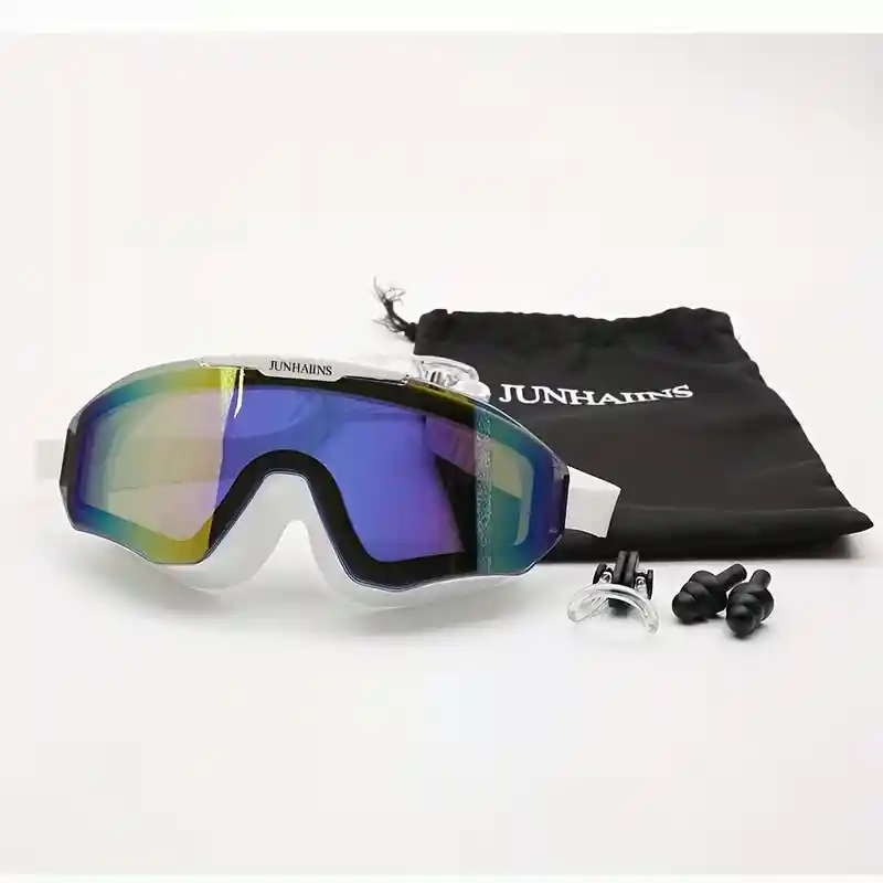 Gafas de natación para adultos con montura grande, integradas y electrochapadas antivaho e UV, incluyen clip nasal oído tapones bolsa almacén. Gafas PC electrolíticas HD antovaho ajustables en hebilla silicona cómoda. Usuario: Adulto Grupo de edad aplicable: 14 años+ Material: PC Festival: día de Gracias, Navidad Color: Negro Cantidad: 1 Protección solar: Sí Anti-vaho: Sí Accesorio de gafas (máscara de buceo): No