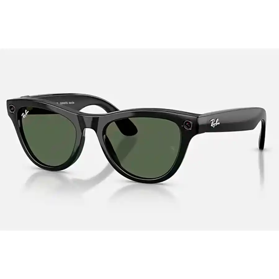 META AI meta-around Conoce más sobre lo que ves a tu alrededor Hey Meta, mira y cuéntame sobre ese monumento meta-sign Pide que traduzca un cartel Hey Meta, mira y dime qué dice en inglés meta-outfit Obtén inspiración para tu look Hey Meta, dame una idea de outfit para un día casual» meta-message Envía mensajes de voz Hey Meta, envía un mensaje de voz a mamá meta-music Escucha tu música o tu podcast favorito Hey Meta, reproduce un podcast que explore destinos únicos meta-video Captura las cosas que quieres recordar Hey Meta, haz un vídeo Detalles del producto Código de modelo RW4014 601/71 52-20 Descripción de la montura Forma de la montura Ojo de Gato Color de la montura Brillante Negro Material de la montura Inyectado Color de las patillas Negro Información sobre las lentes Color de los cristales G-15 verde Tratamiento de los cristales Color Liso Categoría de lente 3N Dimensiones del producto CALIBRE 52 20mm Altura de los cristales 41.9mm Longitud de las patillas 150mm cobertura del rostro cobertura del rostro Estándar Geofit Ajuste de puente alto Información sobre la cámara Adquisición de imágenes 3024x4032px Adquisición de vídeos Up To 2203x2938 Px @30 Fps Audio Sistema audio 2x microaltavoces Micrófono Sistema de audio de 5 micrófonos Control Controles táctiles Controles por voz Tipo de asistente Meta AI Batería y almacenamiento Batería Recargable 8 horas con una sola carga Almacenamiento 32 GB de memoria flash 500+ fotos o 100+ vídeos de 30s Conectividad Wifi Wi-Fi 6E Bluetooth Bluetooth 5.3 Compatibilidad con OS iOS 14.4/Android 10 o versiones posteriores