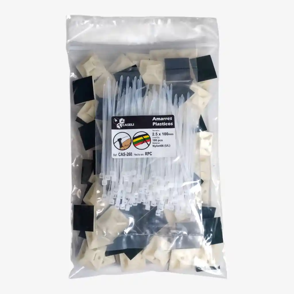 *Ganchos adhesivos con amarre color Beige. *Cinta azul super resistente, incluye amarre de 10cm de alta calidad material nylon *Ideal para instalaciones eléctricas, decorativos, exhibiciones, etc. Medidas *Gancho Altura x Ancho: 2.50 cm x 2.50 cm *Amarre: 10 cm Material *Polipropileno Contenido *100 Amarres y 100 Ganchos Adhesivo